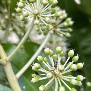 おはようございます♪ ♡今日のお花♡ 🤍八つ手(ヤツデ)🤍 ウコギ科ヤツデ属 雄性先熟 ①ヤツデの雌花 ②ヤツデの雄花 ③上の花‥雄花 下の花‥雌花 雄性先熟で雄しべが先に熟し花粉を散らした後、雌しべが熟し自家受粉を避けています