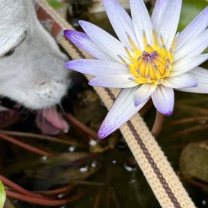 こんにちは♪ 今日の散歩道に咲いてます 💜熱帯スイレン💜 ムラサキ式部に似ています