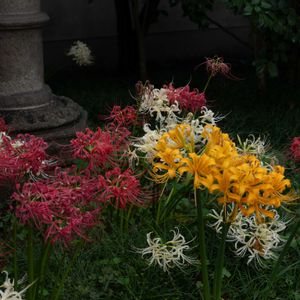 10/7 京都植物園へ行きました。 彼岸花の残りがありました。 蝶は赤の花にしか行かず、白花は無視です。 でも、球根で増えるから関係無いとばかりに、白花は咲いています。