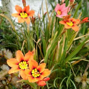 Lapeirousia oreogena ラペイロージア・オレオゲナ 開花しました。 紫と黒が綺麗ですね(*´∀`) 目立たないですが花芽がいくつか上がってるのでその内たくさん咲くはず。 花も綺麗ですが葉っぱもすごい!