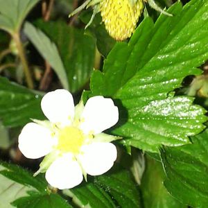 3年目の苺🍓 買ったばかりの年は、白い苺だというのをすっかり忘れていて、なかなか赤くならないなぁと赤くなるのをずっと待っていた2年前😂 鈴なりとまでは、いかないけど、今年は沢山実が付いてくれないかなぁ🎵