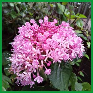 ボタンクサギ✨ 牡丹臭木✨ 中国中南部を原産とするクマツヅラ科の落葉低木 半球状の花を牡丹に見立て 葉に臭気があることから ボタンクサギと命名された 日陰に強いため 観賞用として高木の下や建物の北側に植栽される 開花は7~9月で花期は長い 枝先に小花が直径10~15センチの 半球状に集まって咲く 小花は細い筒型で先が五つに裂け 四つある雄しべが花の外に突き出る 花後の果実は直径1センチほどの球形で 藍紫色に熟す 花色は紅色~紫色で 白い花を咲かせるクサギとの対比において 本種をベニバナクサギと呼ぶこともある かつては花の様子をくす玉に見立てて クスダマクサギと称することもあった 近年は中国名「臭牡丹」に倣って ボタンクサギと呼ぶのが一般的 とのこと🤗 蕊がくっきり見えて可愛い姿を 歩いている途中で発見✨👀 今週も始まってしまいましたが、、 可愛さお届けできたかな🤗 2022.10.22撮影