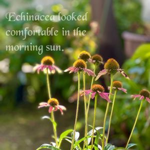 エキナセアが朝陽を浴びて気持ち良さそうでした… 台風の影響で一雨来るかな?なんて思って、前日の夕方に水やりをしなかった💦 全く降らなかったみたいで、朝イチで水やりを… 朝から蚊に刺されました〜ʬʬꉂ(˃̤▿˂̤ *)˖° 🌼 北アメリカ原産のキク科のお花だそう…。 羽付きの羽根みたいで可愛いですよね💕
