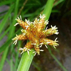 おはよう☀️ 地味草🥰シリーズ👀 水辺に咲くカンガレイ【寒枯櫺】 い草に似た植物🌾 茎は三角になってるそうな👌 在来種🌿