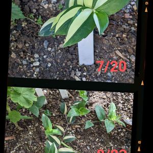 道端で見つけた珍しい葉っぱ こんなにクッキリした模様 斑入り? おしゃれ〜💕😀 迷わず持ち帰り庭の隅に植えておいたら 普通の葉っぱが出てきました チョットがっかり ツユクサのようです😅🤣🪴 こういうのあるんですね🪴🧐