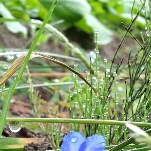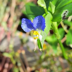 こんにちは💚 きょうは小雨の肌寒い日です☂ となりの畑に咲いている ツユクサ🩵 ちょうど目線の高さなので こんな感じに撮れました📸