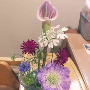 モモイロテンナンショウを カラーみたいに、 いけてみた。。 ニゲラ以外名前忘れました