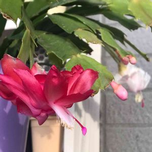 シャコバサボテンちゃん🌸✨ 葉挿しで増やした子🍀🍀🍀 ピンクと白いお花が咲くはずが… 今年は赤も咲いた〜😊❤️❤️❤️✨ お日様や液肥の具合で色の違いが出るのか? それとも赤い葉挿しもあったのか? この花で終わりそうだけど今しろ、ピンク、赤の3種類が一花づつ咲いてる〜⤴︎⤴ 4月になったら葉挿しでも少し大きな鉢に植えられるといいなぁ🍀💖🍀💖✨
