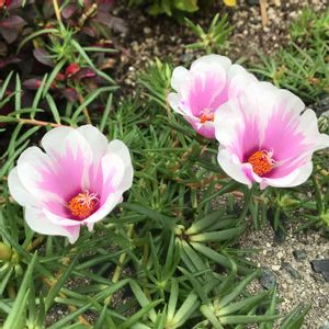 大輪マツバボタン🌸✨でしょうか? 街の花壇で見つけて👀✨ 優しい色のお花…初めての出会い💖