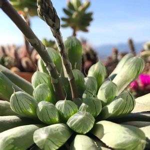 ハルオチア 玉緑① はるばる我が家にやってきた クリスタルさんからの送り物(っ'-')╮ =͟͟͞͞🎁 元気にしてるよ〜👏(・_・)wwwwww 今が成長期?? グリーンが透き通るようで美しい🍀🍀🍀✨ お花も咲き始めました🌸✨