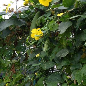 ヘチマのお花 まだ1輪しか咲いてなくて 雌花なのか雄花なのか❓