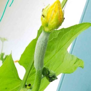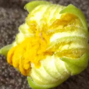 台風被害❗️ 開きかけのヘチマのつぼみが、台風で飛ばされていました😫