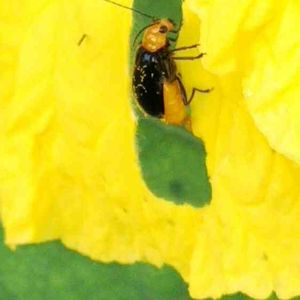 食事中のウリハムシ🍴 葉っぱ🌿よりも花🌼の方が美味しいのかな⁉️