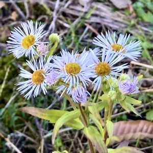 ヒメジヨオン(姫女苑) キク科 原産地 北アメリカ ハルジオンとヒメジョオンは似てますね。🤗 大きな違いは、春に咲くハルジオンは蕾が下向きに咲き、少し遅れて咲くヒメジョオンは上向きのまま咲きます。 🌸 日本全国の至る所に咲き、初冬のヒメジョオンは可愛く目立ってました。🤷♀️ 少し寂しそう…😌