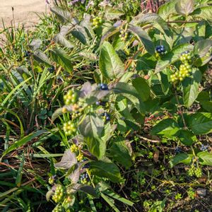 ムラサキシキブです 生け花に使うと、とても素敵で、庭に植えました😊 これはフヨウやヤマブキ、ランタナほどは増えませんが、種が落ちて、いくつか他の場所で育ってます😊 大株になりました🥰