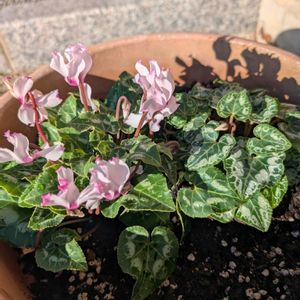 昨日ガーデンシクラメンが大変気に入ったので、二株追加しました 右の白い苗は葉っぱが綺麗で、左の苗は花びらがお気に入りです これから寒くなるけど、たくさん綺麗に咲いてほしいです😊