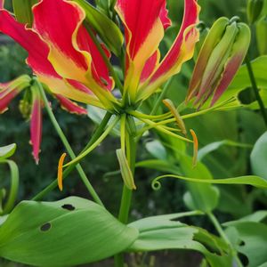 花ともさんの『グロリオサ』🌿 が咲き出しました💨💨 蕾が沢山ありまだまだ咲きますね😆💕✨ 素晴らしい💕
