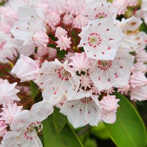 今日の花散歩🚶♀️🚶♀️ 『カルミア』🩷🩷🩷 不思議なお花さんですね~💮 蕾は、金平糖みたいで可愛い過ぎます😆💕✨🩷🤍🌿✨️