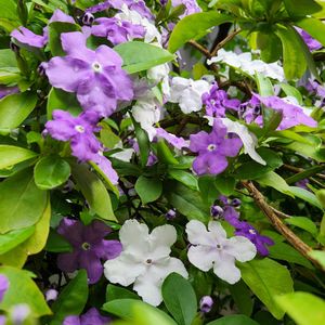 💜ニオイバンマツリ🤍 ナス科 一本の木に紫色と白色が咲いてると思いきや、咲き始めが紫色で白色に変化する花らしいです💨💨 甘い香りがしてます🌿💜🌿🤍🌿