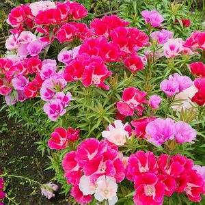 ビスカリア 和名(コムギセンノウ) ナデシコ科 アグロステンマに似た小さなお花です~💮 色とりどりに咲いて可愛いお花さんです🩷🌿🤍🌿💜
