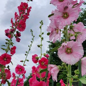 タチアオイ✨️🌿 真っ直ぐに天まで届かんとばかりに伸びてます💨💨 立ち姿が素敵です😆💕✨🩷