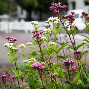 ピンクと白のフジバカマ 20181014サリオパーク祖父江にて。 フジバカマの園芸種で白い色もあるようです。ピンクに見える花も咲いてしばらく経過するとだんだん白くなっていく様です。この写真では,殆どつぼみで,すこし後が見頃かなとおもいます。