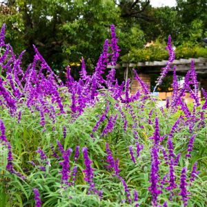 アメジストセージの群落 20181014サリオパーク祖父江にて。 沢山集まって咲く濃い紫の花はとっても鮮烈な印象でした。天気にも恵まれて太陽燦々。すこし暑いくらいでした。