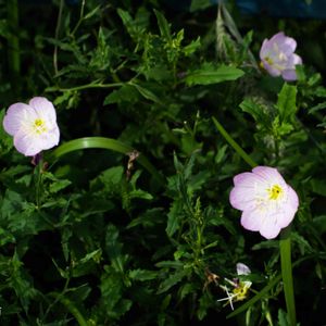 線路沿いで見たツキミソウ この花が月見草と知りました。かわいらしい花です。黄色い花を想像してしまいますが、あれは待宵草ですね。