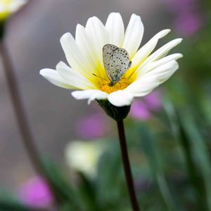枇杷島の街のGS散歩で見たカザニア(で良いかなあ)とルリシジミ 黄色くないですが、カザニアかなあ、と思います。そこにとても小さいシジミチョウが止まりました。ルリシジミと思いますが、これも通常より小さい気がして、やや迷っております。そろそろ夏を飾る花も蝶も終焉に向かっている雰囲気です。この台風24号がら、大きく秋へ変化する予感あり。