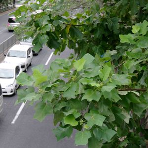 東京目白通りのユリノキ並木 歩道橋に登ると,立派な大木の葉っぱに近づくことができました。 半纏の形の葉っぱの付くこの樹が,学生時代のキャンパスにあって,思い入れがあります。東京・横浜の今回の訪問でいろいろな場所で見ることができました。