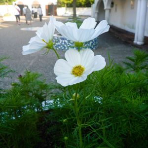 テーマパークに夕方が近づき,そろそろ16:40。今日は楽しかった,ありがとうと言うことで。白いコスモスも素敵でした。
