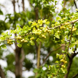 たわわに付いたイチョウの実 台風に耐えた側シリーズ(^_^)のイチョウの木です。たくさん実を付けていて,重みでしなだれています。これで風に折れずに済んで良かったねと言ってあげたいです。