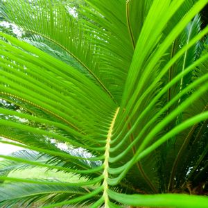 キャンパスのソテツの若い葉 朝の光でなんとも言えないクリアーな緑色が目を喜ばせてくれます。 ちょっとドラマチックに撮って見ました。