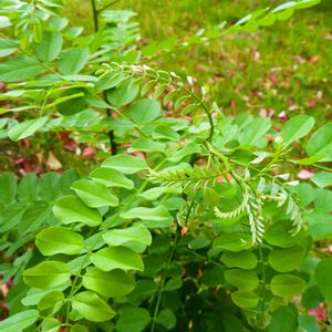ニセアカシア(ハリエンジュ)の若葉が綺麗です。 丸っこい葉っぱが連なった複葉ですが,小さな若葉もいっぱしにその形になって居るのがおもしろいと思います。