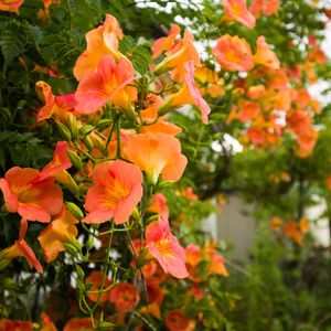 朝日で光るノウゼンカズラ 6/28は梅雨の晴れ間。レンズを新調したので,テストも兼ねて,カメラを持って職場まで5kmを歩いて出勤。痩せるしGSできるし,と良いとこだらけ。と思いきや大分暑くて大汗かいてやや疲れました。でもでも,朝日の当たるお花は大変綺麗でした。
