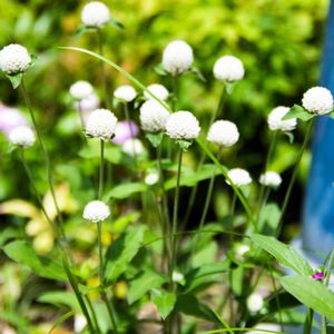 白いセンニチコウ 中村公園の豊国神社の境内にて撮影。やや白飛び気味かも,それがホンワリ,甘い砂糖菓子の様にも見えます。