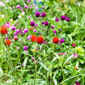 名古屋市中村公園内の豊国神社にて撮影 センニチコウにもこんなに色とりどりの花があるのを初めて知りました。すばらしくキュート,土曜日の雨が嘘のように上がり,ピーカンの陽射しでした,暑い!