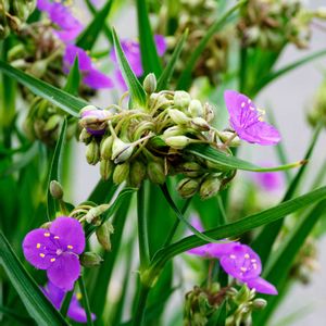 ムラサキツユクサの一種と思いますが,以前観たのとは,花の色や花びらの質感がか弱い感じです。ツボミがぎっしり詰まっているところがおもしろいですが,こんがらがっている?様に見えるのは私だけでしょうか。