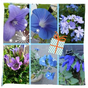 チーム・ブルー 花友さん ㊗️k57さん2200pic おめでとう🎉💐ございま〜す… 青い花色々詰め合わせにして㊗️🎁に… デンドロビウム↖️ アメリカンブルー⬆️ ルリマツリ↗️ リンドウ↙️ シコンノボタン⬇️ サルビアガラニチカ↘️ 🌸💜💙💟💜💙🌿💐✨️ の花で… 何時も㊗️に気をつけてくださって感謝ですょ〜💐 これからも…4649お願い致します…(*^^*)ね🙆🏻🤗💙💜💟💐