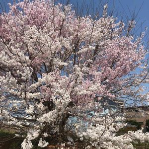 桜咲く~🌸 相当な樹齢と思う ひとつの木にピンクと白が一緒に咲く桜 こんな桜あるんだね 素敵過ぎる゚:*。(*゚д゚)ステキ*:゚