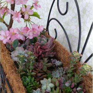 もう一つの多肉寄せ💗 梅祭りで頂いた河津桜と 共に