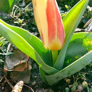 ミニミニのチューリップ😃お花は大きいのに・・?気候のせい?土がよくなかったのか?でも頑張ってくれてます😃🎵