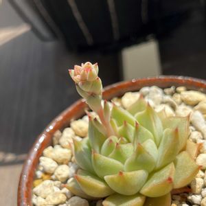 モンちゃんにも春が来た‼️ 昨夜、発見した時は2mmほどでした。😊 お〰️😮、たった今出て来たの⁉️と思うとカンゲキ‼️ 今夜になって既に1cmくらい😄😉😆 さすがに成長、早い😁😂😚 去年は葉が6枚付いてくれて。 今年は何枚付くかな🌿