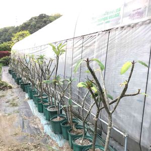 天井高5.5メートルのノッポ温室🌴 冬の間入れていた背の高いプルメリアたちを屋外に出したので、保温のために張っていた内張りカーテンを撤去しました😊 風通しが良くなったので南国植物たちをこちらに移動したら良い感じ🌱