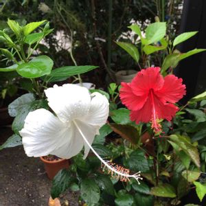 右側のハイビは沖縄の県花🌺 「アカバナー」 アカバナーはハイビスカスの原種で、沖縄では一年中咲いてるエキゾチックな花✨ ホワイトバタフライと並んで可愛いパシッ!