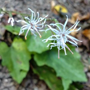 ✨テイショウソウ(禎祥草)✨ キク科・モミジハグマ属 細長く裂けたような花びら(花冠) リボンのようにヒラリ🎵 日陰にひっそり🤍綺麗でした✨✨✨ 🏷️山野草マニア 🏷️純白マニア
