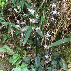 小さな苗のセンブリをたくさん見つけて1ヶ月後に見に行った。 まだ咲いている株はなし😅 側の林道を少し歩くと可愛いお花がいっぱいです😌💓 50㎝くらいの高さで、目立たない色の面白いお花。 葉は、シダの下に隠れている。 キク科モミジハグマ属の多年草