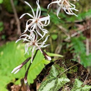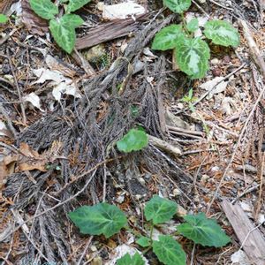 えっ! と二度見するほど美しくシブい葉っぱですねー?🌟(上2つ) 私の好きなハグマ類でしたか!😍 花の時期も見たい✨😊 禎祥草 キク科モミジハグマ属の多年草。 葉の表面は、しばしばカンアオイのような白い雲紋状の模様があり、裏面はわずかに暗紫色を帯びる。 花期は9-11月。頭状花序は総状につき、一方にやや偏って花をつける。1頭花は3個の小花からなり、花冠は白色で5裂する。 千葉県以西から近畿地方南部までの太平洋側と四国に分布し、山地の暖帯林のやや暗い林床に生育する。 イチヤクソウはまだつぼみ。 今日のハイライト?牛馬童子🌟 今日の宿泊地ももうすぐです✨