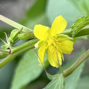 モロヘイヤの花 きれいな黄色 (*˘︶˘*).。*♡.·´💛 花が咲いたら 種と茎にはには毒が… :゚(;´∩`;)゚:。