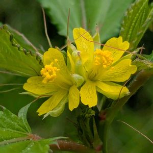 ①モロヘイヤ アオイ科 「王様の野菜」と呼ばれる 極めて栄養価が高い野菜 刻むとオクラのような 粘りとほんのり甘味が出る ※種やサヤは有毒⚠️ ②③④金水引 バラ科 枝先に黄色く小さな5弁花 花径7mm 花後の果実は トゲがあり「ひっつき虫」 (パラシュート🪂)